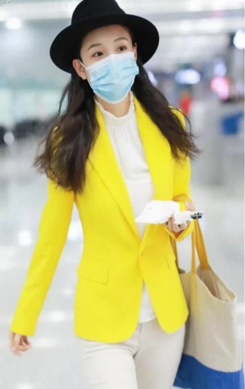 吳倩機場穿搭太亮眼!黃色西裝