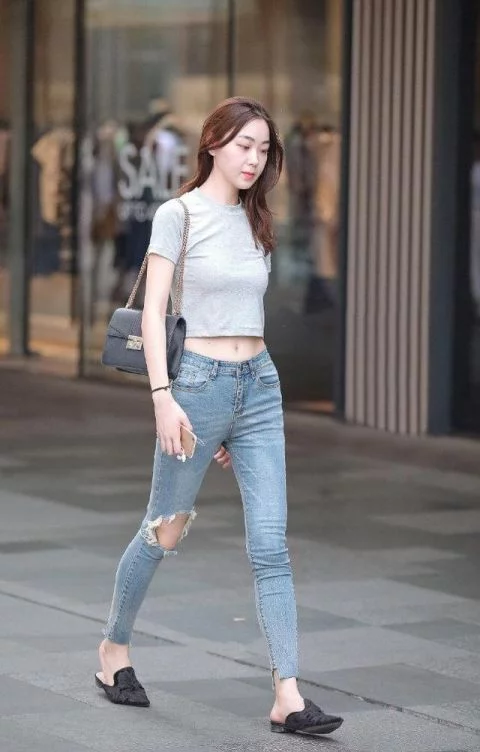 於日常穿搭,時尚女生們從不隨波逐流,她們往往只會選擇那些能夠穿搭出美感,而且自己又很喜歡的衣服。就拿夏天來說,面對着日漸攀升的氣溫,不少女生都早早地換上了短裙和短褲。但對於一些偏愛牛仔褲的女生來說,褲子上加點破洞,不但清涼透氣,還能讓造型顯得時尚個性。       這位小姐姐就是如此,她選擇了破洞牛仔褲的裝扮,在眾多的牛仔褲的款式當中,有破洞的牛仔褲可以說是不少年輕女生偏愛的款式,因為它所能帶來的個性感,是其它很多單品所無法比擬的。而且這條牛仔褲還是修身的褲型,從而就使得小姐姐細長的腿部線條很輕鬆的就得到了展現。       而且除了破洞以外,這條牛仔褲還有着不規則的褲腳設計,這樣一來,不但整條褲型更具細節感,同時在造型氣質方面也能因此而更顯個性。   上衣的部分,小姐姐則是搭配了一件修身顯瘦的短款T恤,從而就能讓小姐姐輕鬆秀出腰部線條。而且由此也可以看出,這位小姐姐是很會穿搭的,她很好的利用了衣服的款式來展現自己的身材優勢。   在鞋子的搭配選擇上,這位小姐姐則是搭配了一雙黑色的尖頭低跟鞋,這雙鞋子穿搭起來固然低調舒適,但卻對外在美的提升沒有什麼明顯的幫助,而從小姐姐的身材氣質方面來看的話,高跟涼鞋無疑是很好的選擇,不但能夠修飾身材,還可以讓小姐姐的整體造型多出幾分優雅的氣韻。       而且從整體的穿搭效果來看的話,小姐姐選擇了修身的牛仔褲搭配短款T恤的裝扮,不但休閑個性,而且還足夠的清爽靚麗。由此可以看出,夏日的穿搭不僅僅只有短裙和短褲,只要時尚女生們肯花費時間和精力在日常的穿搭上,就能夠讓自己的造型擺脫都市街頭那些千篇一律的風格,進而展現出自己專屬的時尚美。   分享至